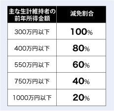 新型コロナウイルス感染症の影響で主な生計維持者の事業収入、不動産収入、山林収入また給与収入の減少が見込まれ、①事業収入が30%以上減少②合計所得金額1千万円以下③収入減少が見込まれる所得以外の前年所得合計額が400万円以下―の要件に全て該当する世帯。減免額の割合は、表の通りです。